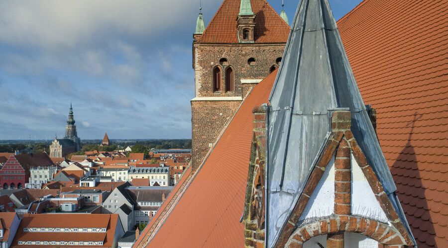 Ebenso wie die anderen alten Stadtpfarrkirchen prägt die gotische Backsteinkirche St. Marien das Stadtbild Greifswalds und hat Eingang in die Malerei Caspar David Friedrichs „Wiesen bei Greifswald“ (1820/22, Hamburger Kunsthalle) gefunden. Anfang des 19. Jahrhunderts war Friedrich diesem Gotteshaus darüber hinaus in ganz besonderer Weise verbunden.